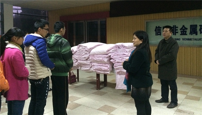 首先领导老师们亲切的与同学们交谈,向同学们了解日常生活与过冬御寒物品的置办情况,叮嘱同学们在忙着学习知识、强化技能的同时不要忘记防寒保暖,多做运动多锻炼,增强体质。在老师们真诚的关心下部分同学说出了自己的被褥少,被褥薄的情况,随后领导老师亲手将一床床温暖的过冬被褥送到了需要的同学手中,为他们在寒冷的冬日送上了温暖。同学们接过被子,对学院领导老师无微不至的关怀表示了诚挚的感激之情。在场同学纷纷表示,一定不辜负领导老师的期望,勤奋刻苦,坚持不懈的学习专业知识,提高自身素质努力回报学校,回报社会。副书记宋力指出同学们要怀着感恩的心看待生活,用自强不息的态度面对生活,规划好自己的大学生活。活动在温馨的氛围中结束。