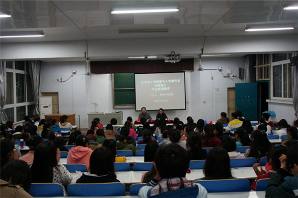 院长杨性坤主讲,辅导员李中杰主持,到场的有化学学院两个专业共计160余名新生。