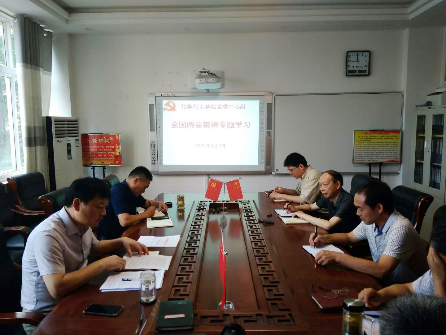 党委理论学习中心组在化学实验楼三楼313“党员之家”,专门开展了全国“两会”精神线下专题学习,学院党委委员井强山、归风铁、骆定法、刘鹏等参加了学习。中心组学习由学院党委书记郭鹏主持。