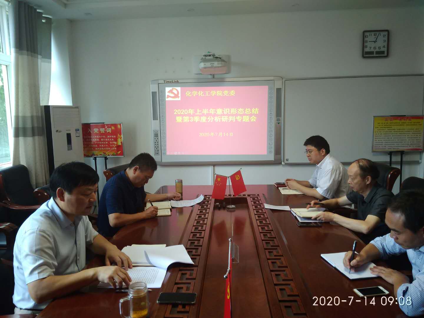 分党委在“党员之家”召开2020年上半年意识形态工作总结暨第3季度分析研判专题会。学院分党委委员参加,会议由党委书记郭鹏主持。
