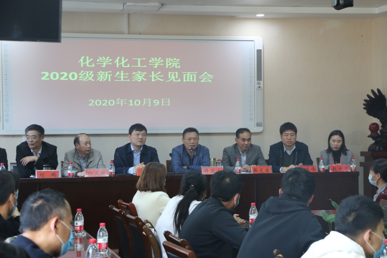 在化学实验楼407召开2020级新生家长见面会。学院党委书记郭鹏、院长井强山、副院长归风铁、副院长骆定法、副所长刘鹏、副书记吴志伟,以及2020级新生班主任许超博士、于静、赵方方老师等莅临现场,与百余名新生家长代表进行亲切地交谈。