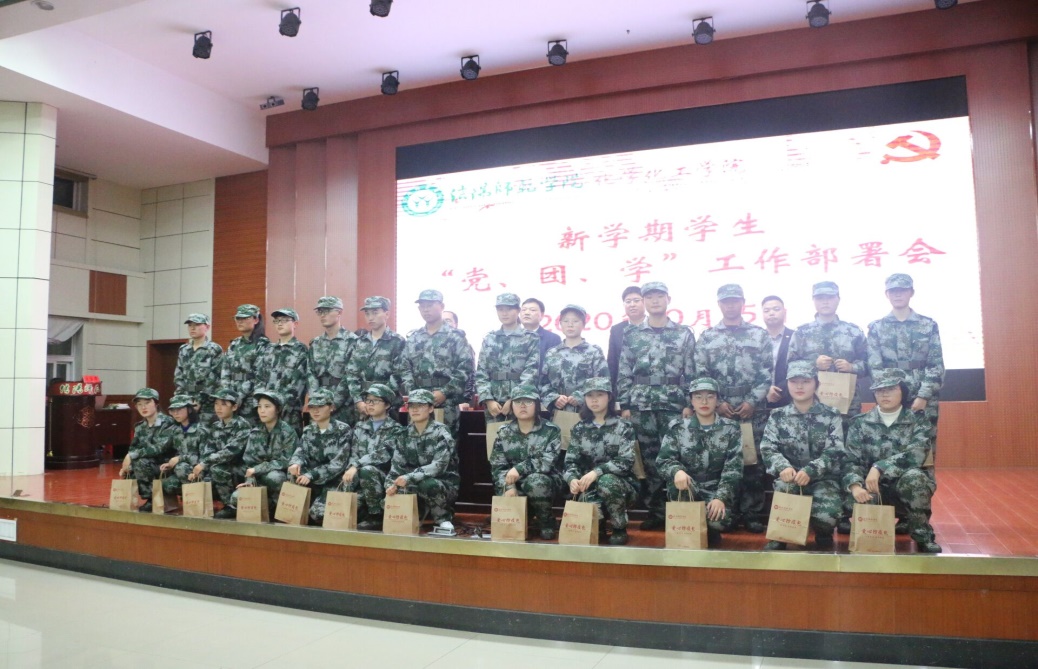 新生入学教育品牌活动,希望各位新生积极参与各项活动,他强调各个班级一定要重视青年大学习,要做到认真学习,人人学习。赵芳芳老师对学生资助的情况,做以说明和通报,并集中发放2020级新生军训爱心防疫礼包。
