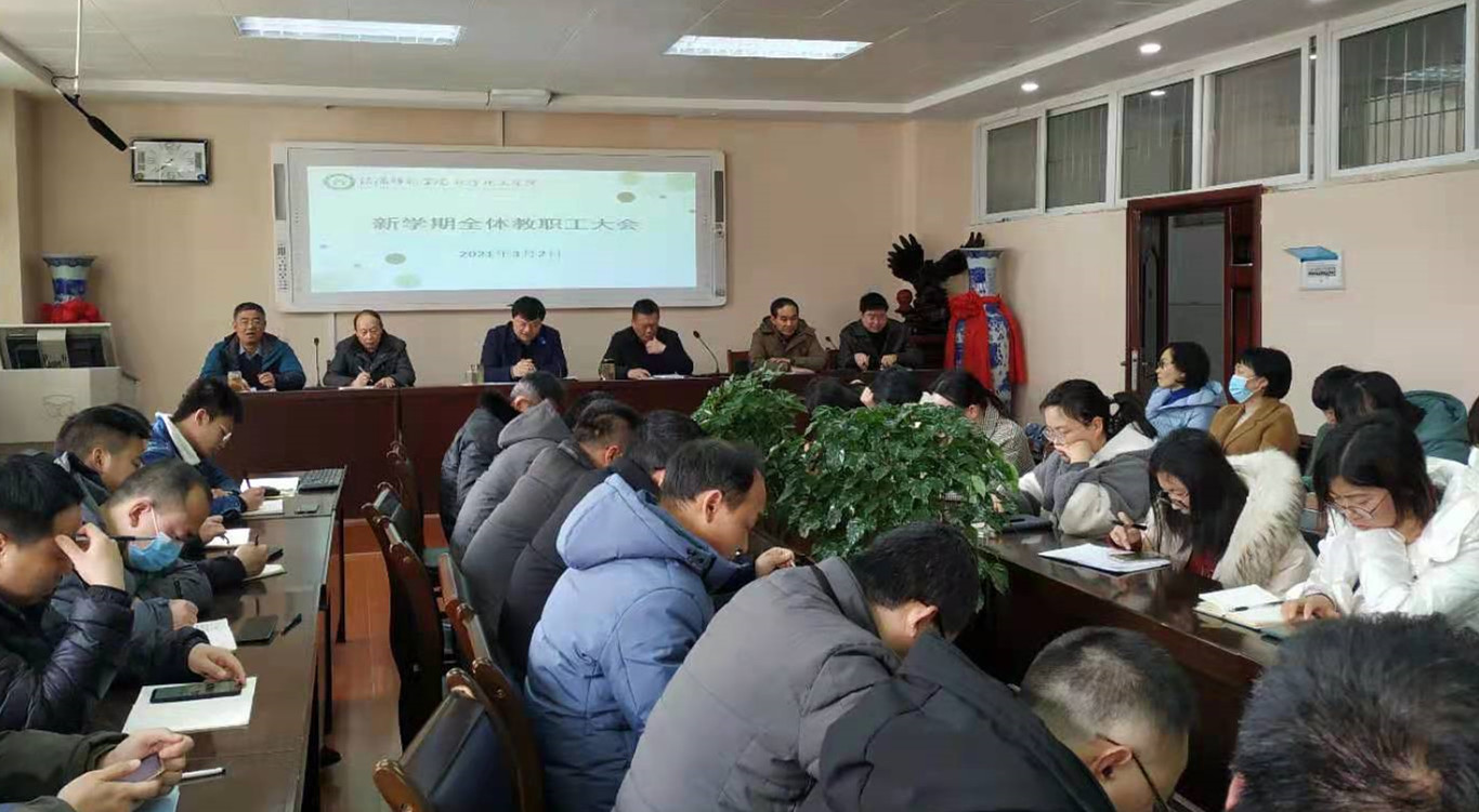 在实验楼407会议室召开新学期本科教学工作专题部署会,全体教职工参加会议,会议由党委书记郭鹏主持。
