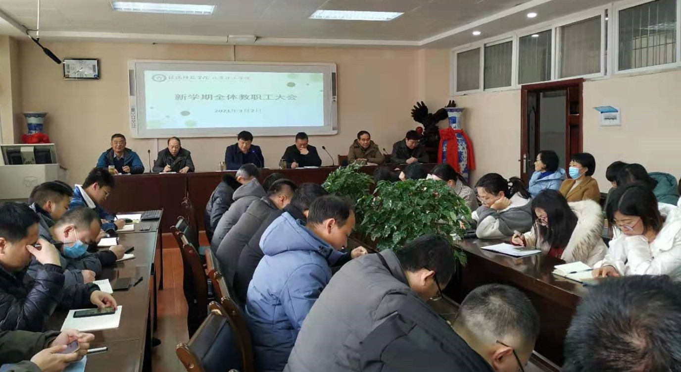 迅速召开第一次全体教职工大会,及时传达新学期全校中层干部大会精神,及早谋划部署2021年教育教学、事业发展,转变作风,狠抓落实,提振精神,调整状态,努力在新学期起好步、打好底、开好局,实现新的一年新学期开局顺、开门红。学院全体教职工全员到会,会议由学院分党委书记郭鹏主持。