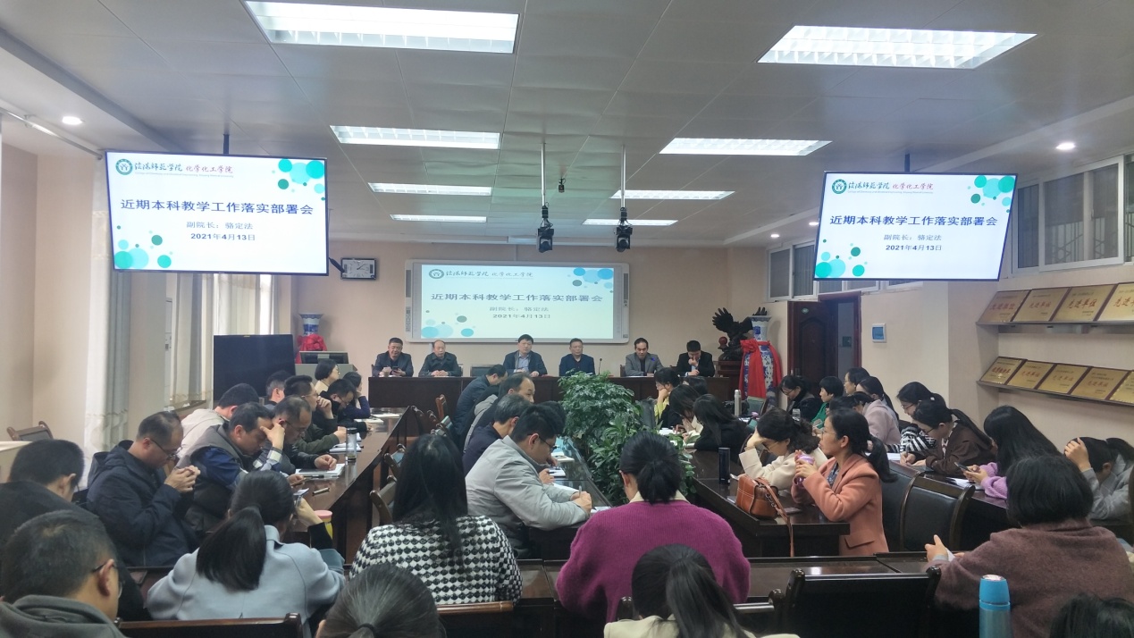 实际,围绕全面提升人才培养质量、加强教学基本建设、深化教学改革、完善教育教学质量标准、严格日常教学管理等方面,对学院近期本科教学工作做了具体安排部署,并就一流专业培育、一流课程申报、化学师范专业认证、教学创新大赛组织、教学工程项目申报、教育实习总结、毕业论文指导、教学运行监控等工作进行了特别强调。