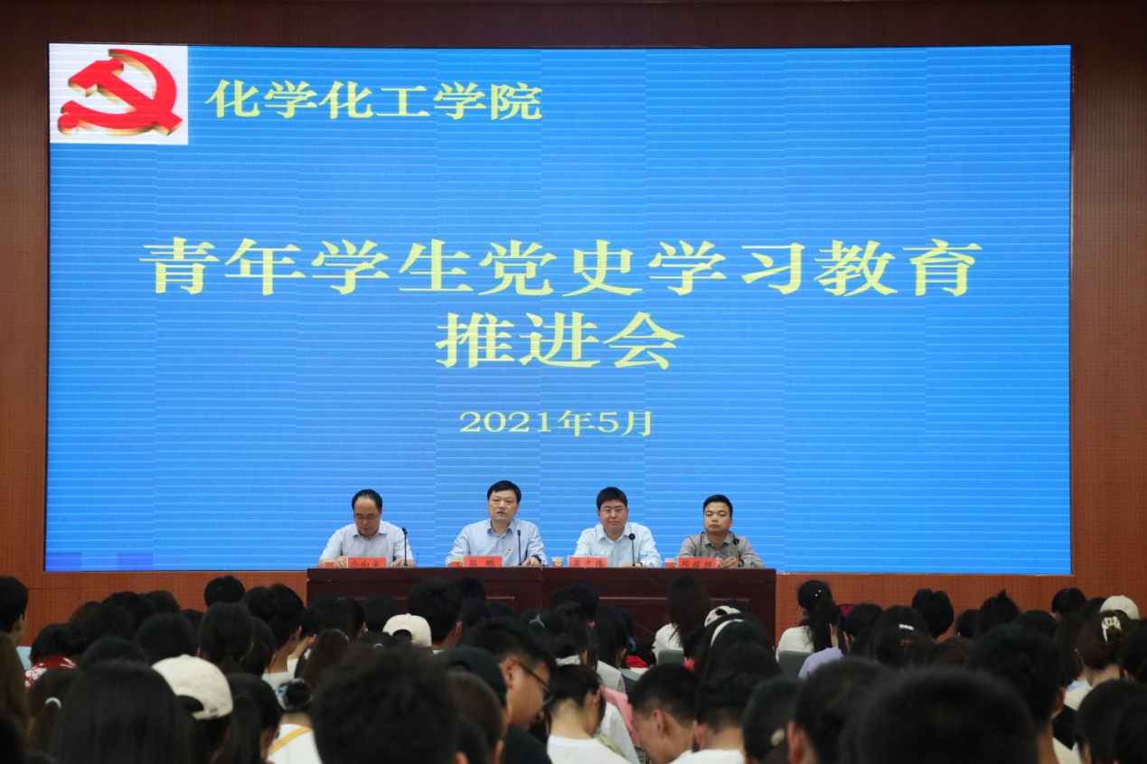 于逸夫楼报告厅召开青年学生党史学习教育推进会。学院党委书记郭鹏、副书记吴志伟、组织员冷向宇、团委老师邓耀辉出席会议,全体学生党员、学生干部以及学生代表400余人参会。会议由冷向宇主持。