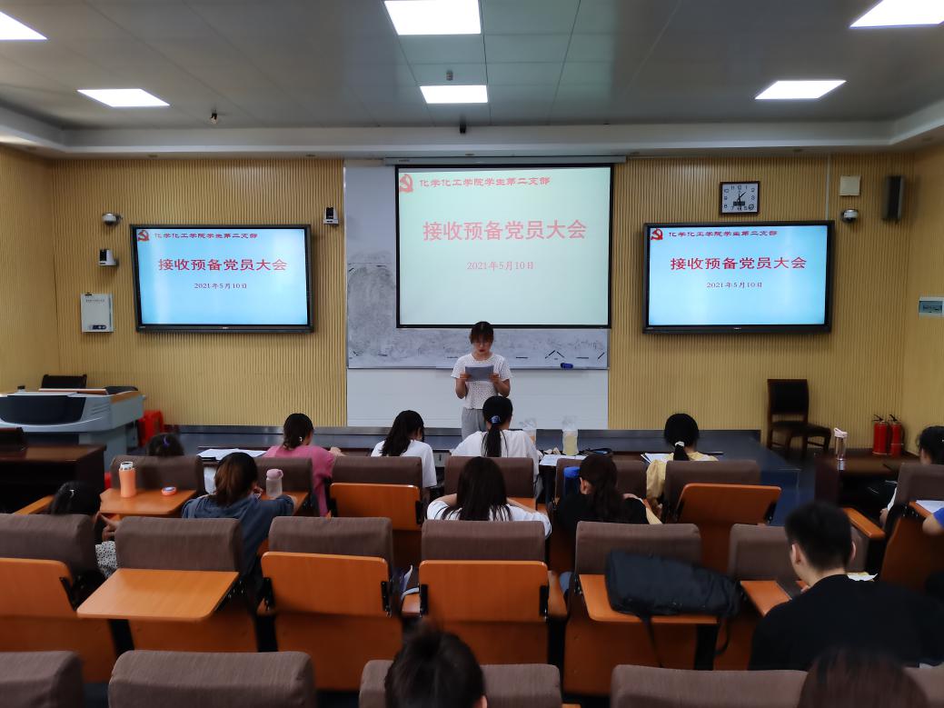 学生第二党支部在教四T2召开接收预备党员支部大会。第二党支部李梦瑶同志主持本次会议。