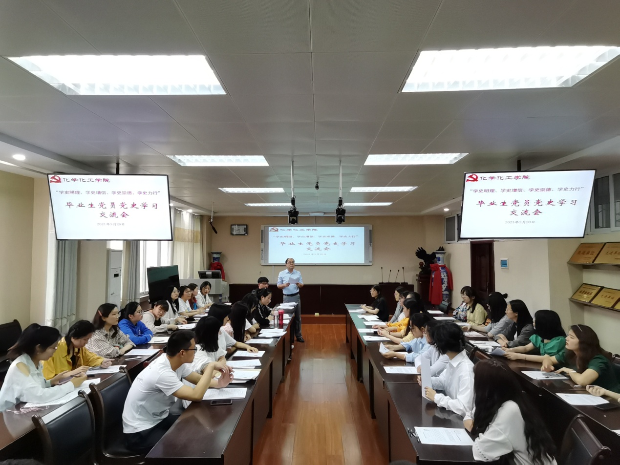 2021届毕业生党员在实验楼举行“学史明理、学史增信、学史崇德、学史力行”党史学习交流会,交流学习《中国共产党简史》心得体会。学习交流会由分党委专职组织员冷向宇主持。