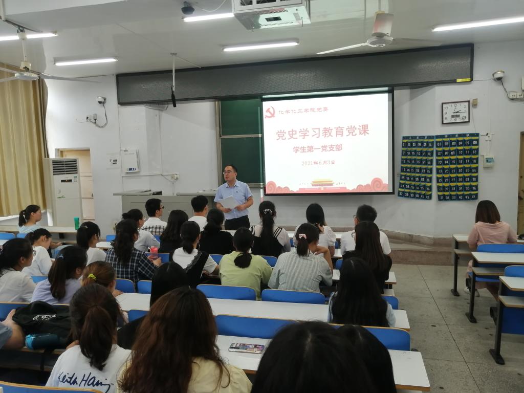 学生第1党支部在教四T1教师进行党史学习教育主题党课。学院学生第一党支部书记冷向宇以《习近平教育强国思想》为题,为学生党员开讲党史学习教育专题党课。