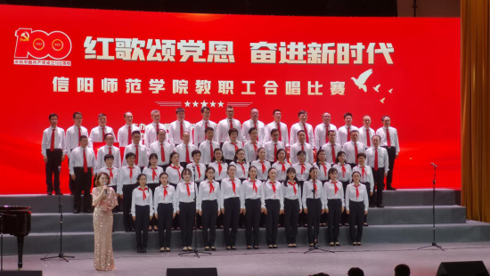 分工会教师合唱队正式参加学校“红歌颂党恩 奋进新时代”教职工合唱比赛。校党委书记王文鹏,校长李俊,校党委副书记郜火星,校党委副书记、工会主席王文臣,副校长刘彦明,校纪委书记、监察专员龚立新,副校长陈登报、余本海、王金云、胡海华、郑云等出席此次活动。全校共25支合唱代表队参赛,成人小说
