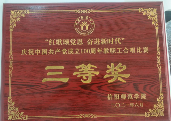 党委书记、分工会主席郭鹏带领学院教职工合唱队激情参与,经过激烈的角逐,学院合唱曲目《没有共产党就没有新中国》一举荣获大赛三等奖。