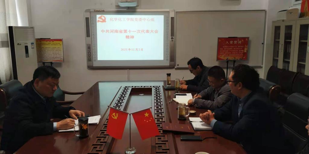 11月2日,成人小说 党委理论学习中心组在化学楼313“党员之家”召开专题会议,传达学习贯彻落实中国共产党河南省第十一次代表大会精神。学院党委理论学习中心组成员及党支部书记代表一起参加了会议。党委书记郭鹏主持会议。