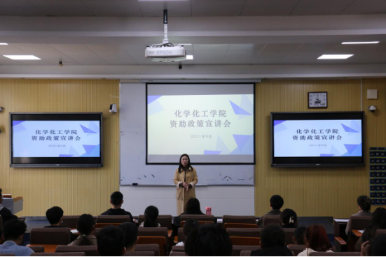 于9月30日在教四T2召开“资助政策宣讲会”。会议由化院辅导员赵方方老师主持,各班班长及宣传委员参加会议。