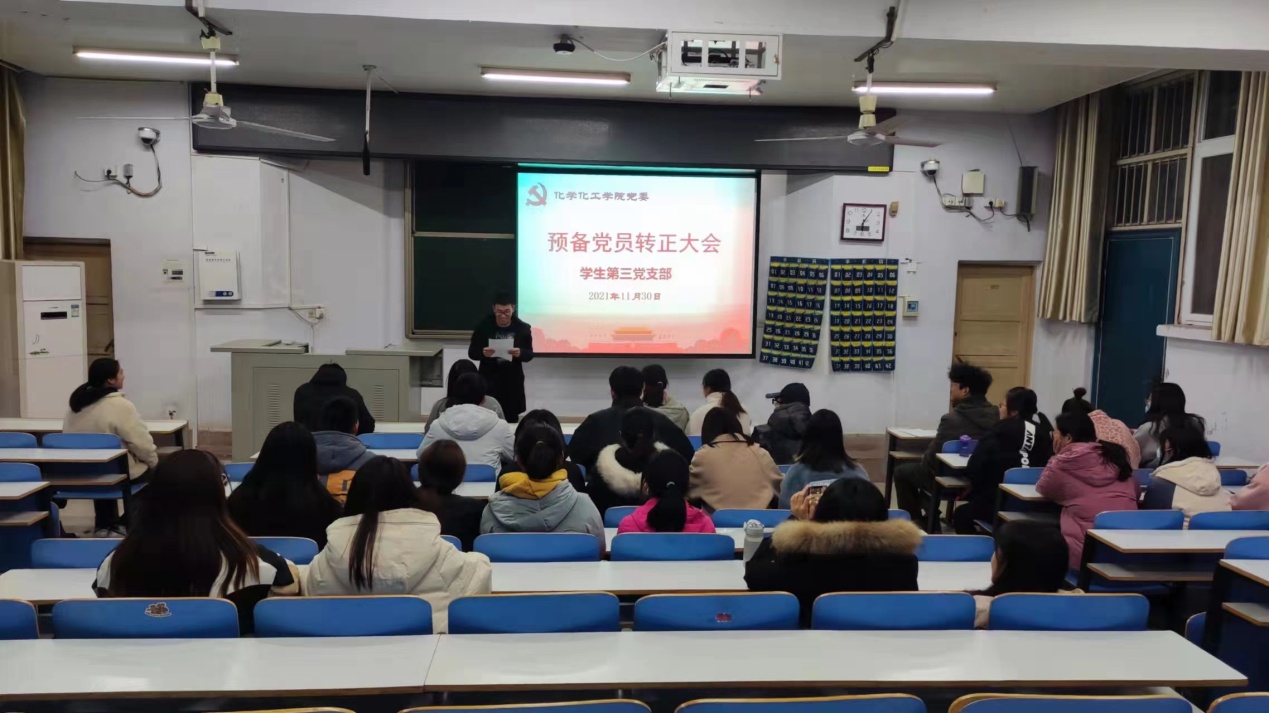 为巩固党员队伍质量,严格履行党章规定的预备党员转正手续,2021年11月30日,成人小说 学生第三支部在教四楼T1室召开预备党员转正大会,学生第三支部6名正式党员和16名预备党员参加本次大会,其中有4名预备党员转为正式党员。