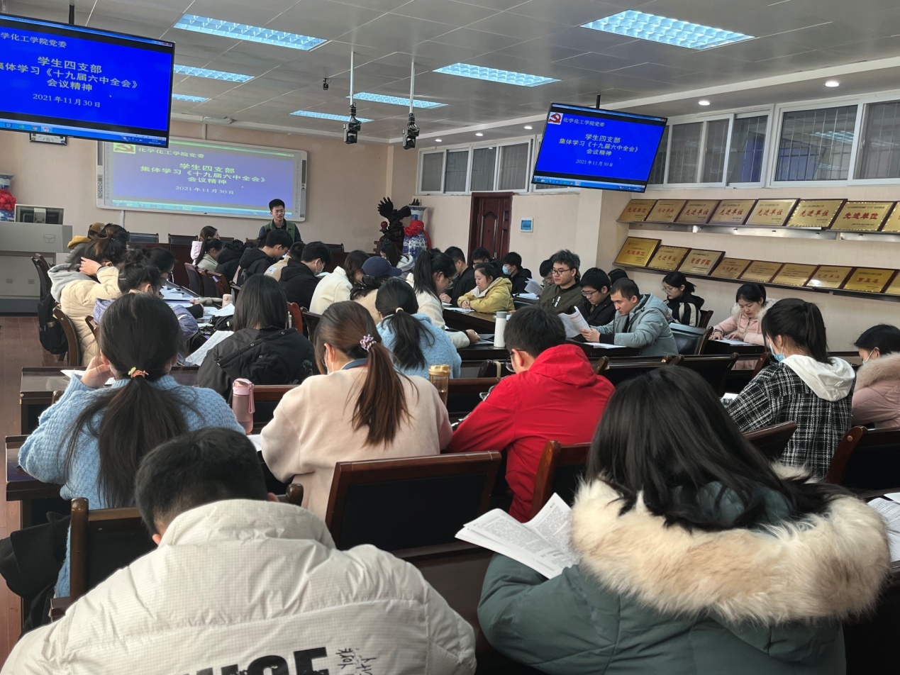 学生各支部组织全体学生党员全面学习贯彻党的十九届六中全会精神。