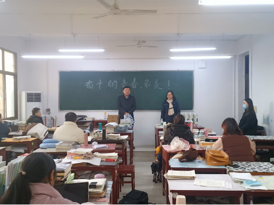 郭鹏对同学们在严寒里坚持复习表示了关心与肯定,对同学们提出三点希望:一是在考研复习过程中要坚定信心、脚踏实地,制定合理的学习计划,掌握科学的学习方法,提高学习效率,实现量变到质变的转变;二是在任何时候都不要放弃,严格要求自己的同时也要调整好心态,珍惜在教室里一起学习的机会,做到互相监督,互帮互助,形成“比学赶超”的良好学习氛围;三是要合理安排作息,注意劳逸结合,身体是革命的本钱,考研是一场持久战,要保持身体健康,加强体育锻炼,用健康的体魄去迎接最终的冲刺。