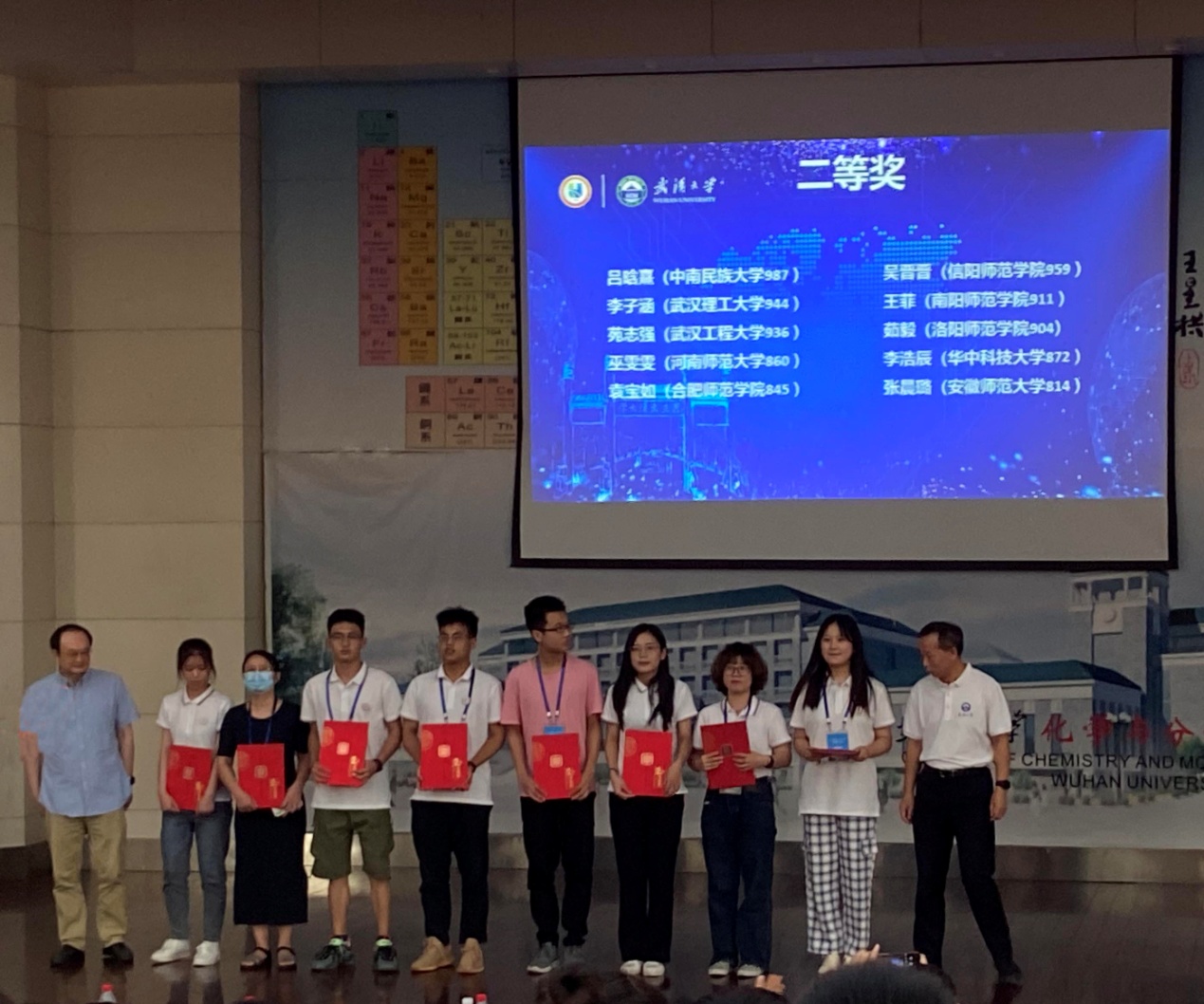 7月22日-25日,“全国第二届大学生化学实验创新设计竞赛”华中赛区复赛在武汉大学顺利举行,并圆满落幕。成人小说 选派的2支学生实验创新设计团队,在裴强博士、马献涛博士率队精心指导下,精彩展演,沉着应答,出色表现,斩获佳绩,分别获得全国大赛华中赛区二等奖。