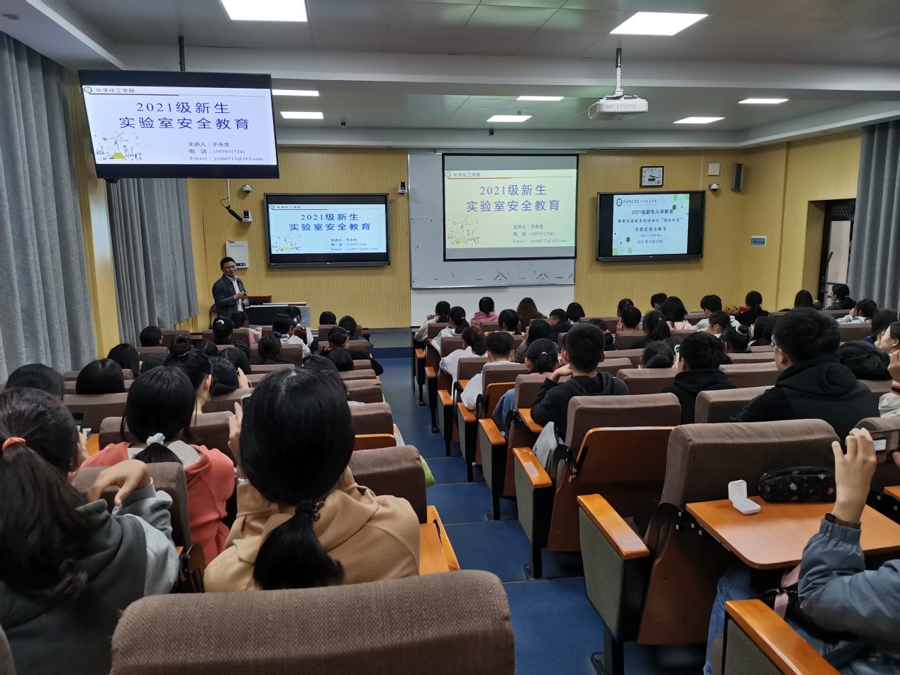 10月15日,成人小说 在教4楼举行实验室安全教育讲座, 2021级本科新生参与,成人小说 副院长于永生博士主讲。
