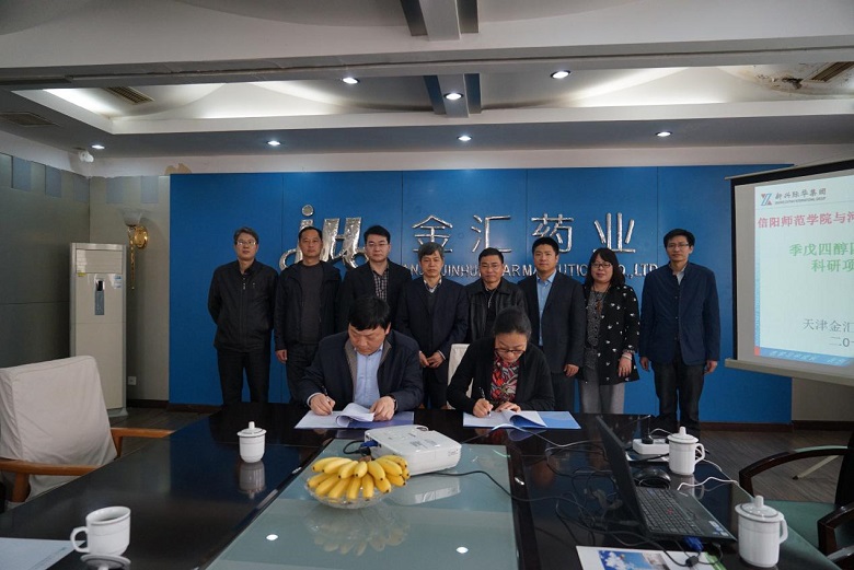 4月9日,信阳师范学院成人小说 与河南甾体生物科技有限公司开展横向课题研发合作签约仪式在天津金汇药业集团总部隆重举行,信阳师范学院校长李俊亲自出席并见证了签约仪式。