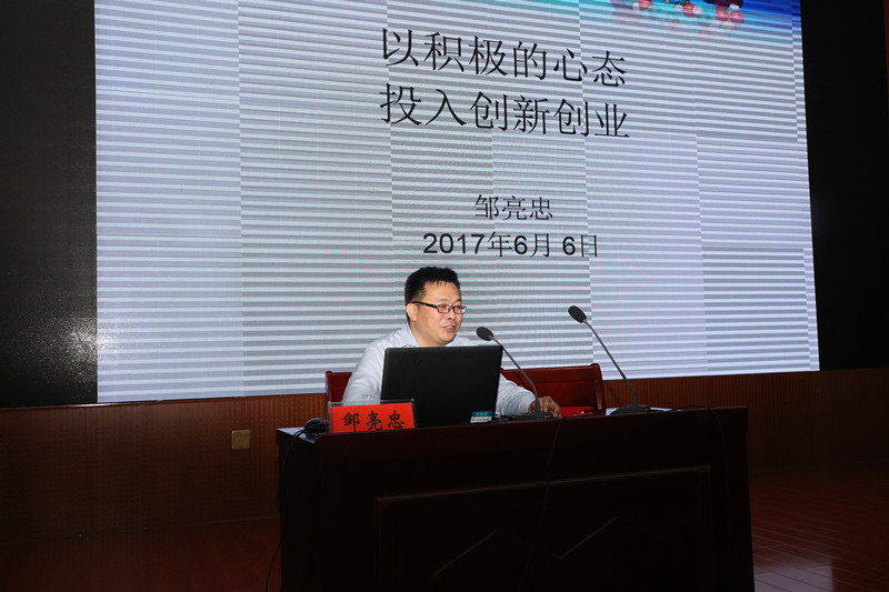 6月6日下午,海客迈斯生物科技(上海)有限公司总经理邹亮忠做客“谭山梦”校友大讲堂,与四百余名学生分享了题为“以积极的心态投入创业”的讲座,参加讲座的还有招就处、学生处、校友办、成人小说 、法学与社会学学院、文学院等相关单位的负责同志。