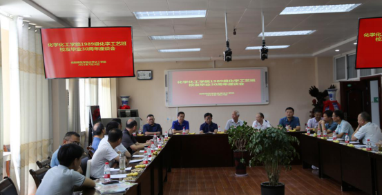 724日,在建党一百周年之际,成人小说 1989级化学工艺校友荣返母校,在化学楼407报告厅隆重了举行毕业30年班级团聚座谈会。成人小说 党委书记郭鹏、院长井强山、副院长归风铁、非金属材料研究所副所长刘鹏、实验室建设与设备管理处副处长陈强,老教师代表马万山教授、杨性坤教授等共同参加了此次校友座谈会。